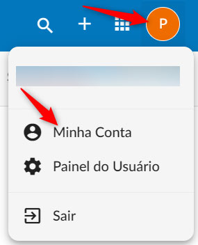- Logado no WebMail, clique em cima do círculo, na parte superior direita, onde o usuário consegue alocar a foto de perfil do usuário e escolha a opção "Minha conta".