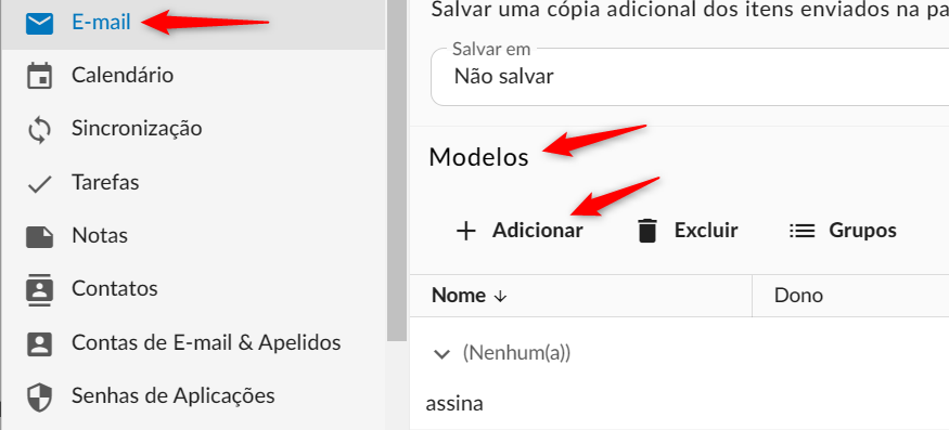 - Desça até a seção intitulada "Modelos" e clique em "+ Adicionar".