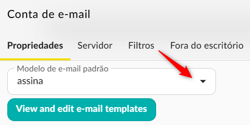 - Na primeira aba, "Propriedades", no menu "pulldown" intitulado "Modelo de e-mail padrão", escolha a assinatura que acabou de criar e deve constar com o nome que deu a ela.